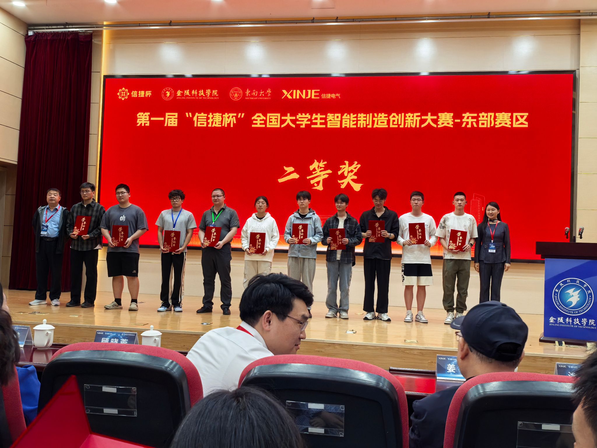 5月9日至10日,第一届“信捷杯”全国大学生智能制造创新大赛(东部赛区)在南京成功举办。本次大赛由中国自动化学会主办,金陵科技学院、东南大学、无锡信捷电气股份有限公司联合承办,吸引了来自河海大学、江南大学、南京信息工程大学等45所高校的129支队伍同台竞技。江苏工程职业技术学院智能制造学院两支参赛队伍脱颖而出,在强手如云的竞争中均荣获“系统综合应用赛项”二等奖,展现了职业院校学子的卓越风采。