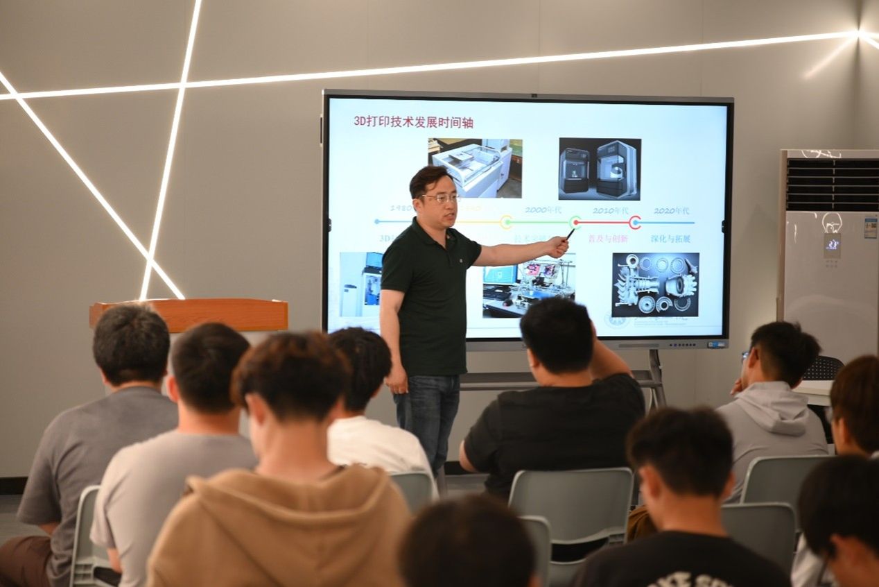陆亮亮博士在3D打印及相关专业领域有着深厚的学术造诣和丰富的研究经验。他围绕3D打印技术通过"过去-现在-未来"三维视角展开深度解析,介绍了3D打印的由来、3D打印的两种常见方式以及3D打印在近十年中呈现的快速发展的趋势,让同学们对该领域有了进一步的认识和了解。陆博士不仅分享了自己的学术见解,还介绍了当前3D打印技术的最新研究动态和发展趋势,在场的同学们对该领域的前沿知识有了更清晰的认识。同学们结合专业特色提出实践导向问题“3D打印技术等尖端技术的产生对基础制造业的有哪些影响”等与陆博士进行互动交流。陆博士强调"技能人才数字化升级"的时代趋势,并寄语在场学生:“在智能制造的赛道上,既要做得了图纸设计,更要玩得转打印终端——这就是新时代技术工匠的核心竞争力。”