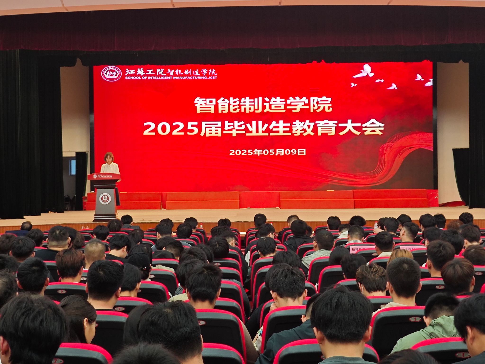 5月9日晚,智能制造学院在崇川校区大礼堂召开2025届毕业生教育大会。智能制造学院党总支副书记保慧、副院长胡志刚、朱海荣、毕业班班主任、辅导员及2025届全体毕业生参加了本次大会。