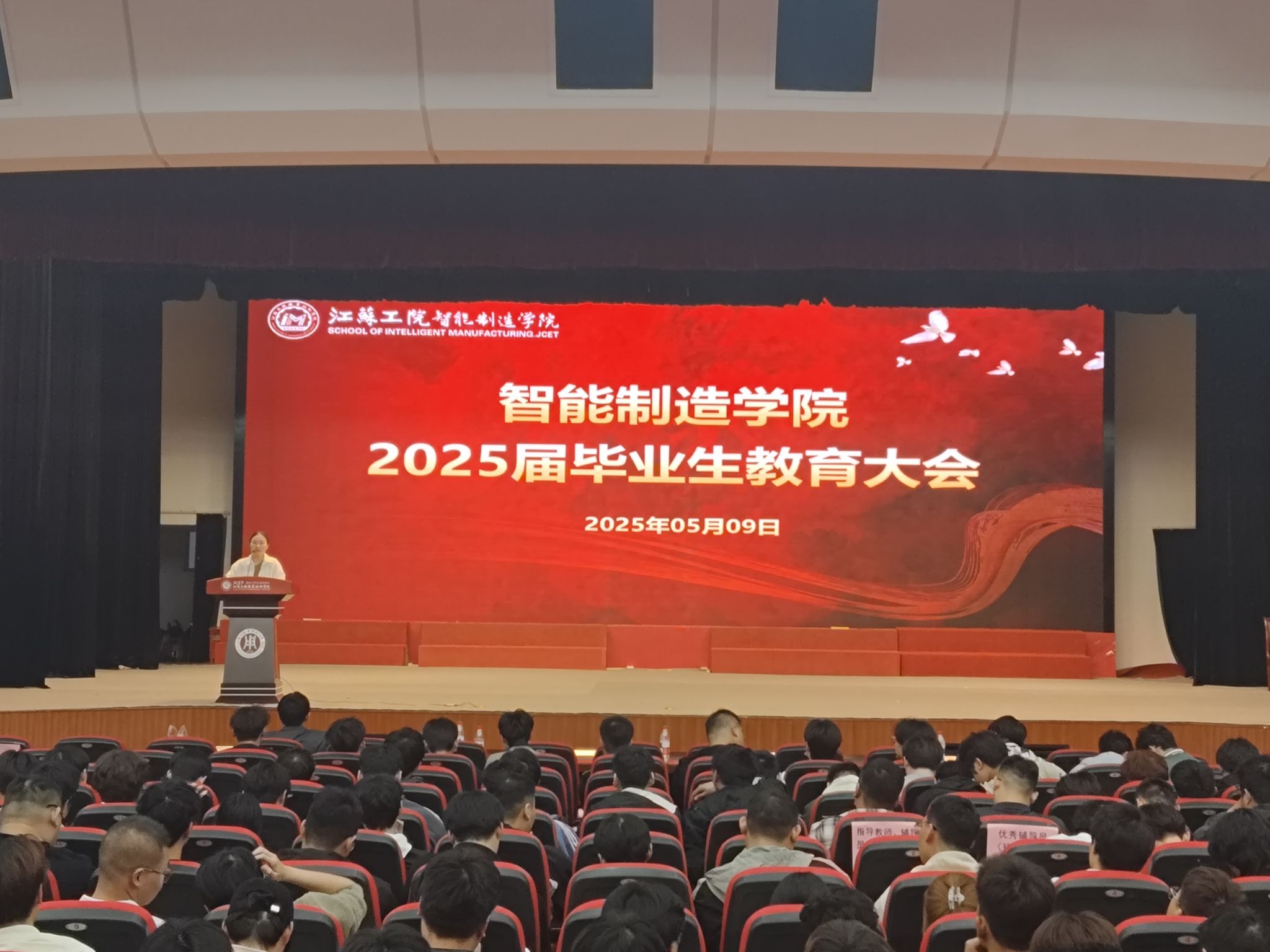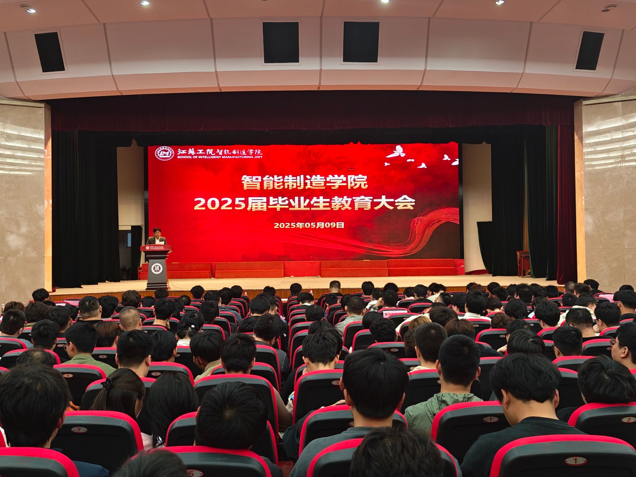 5月9日晚,智能制造学院在崇川校区大礼堂召开2025届毕业生教育大会。智能制造学院党总支副书记保慧、副院长胡志刚、朱海荣、毕业班班主任、辅导员及2025届全体毕业生参加了本次大会。