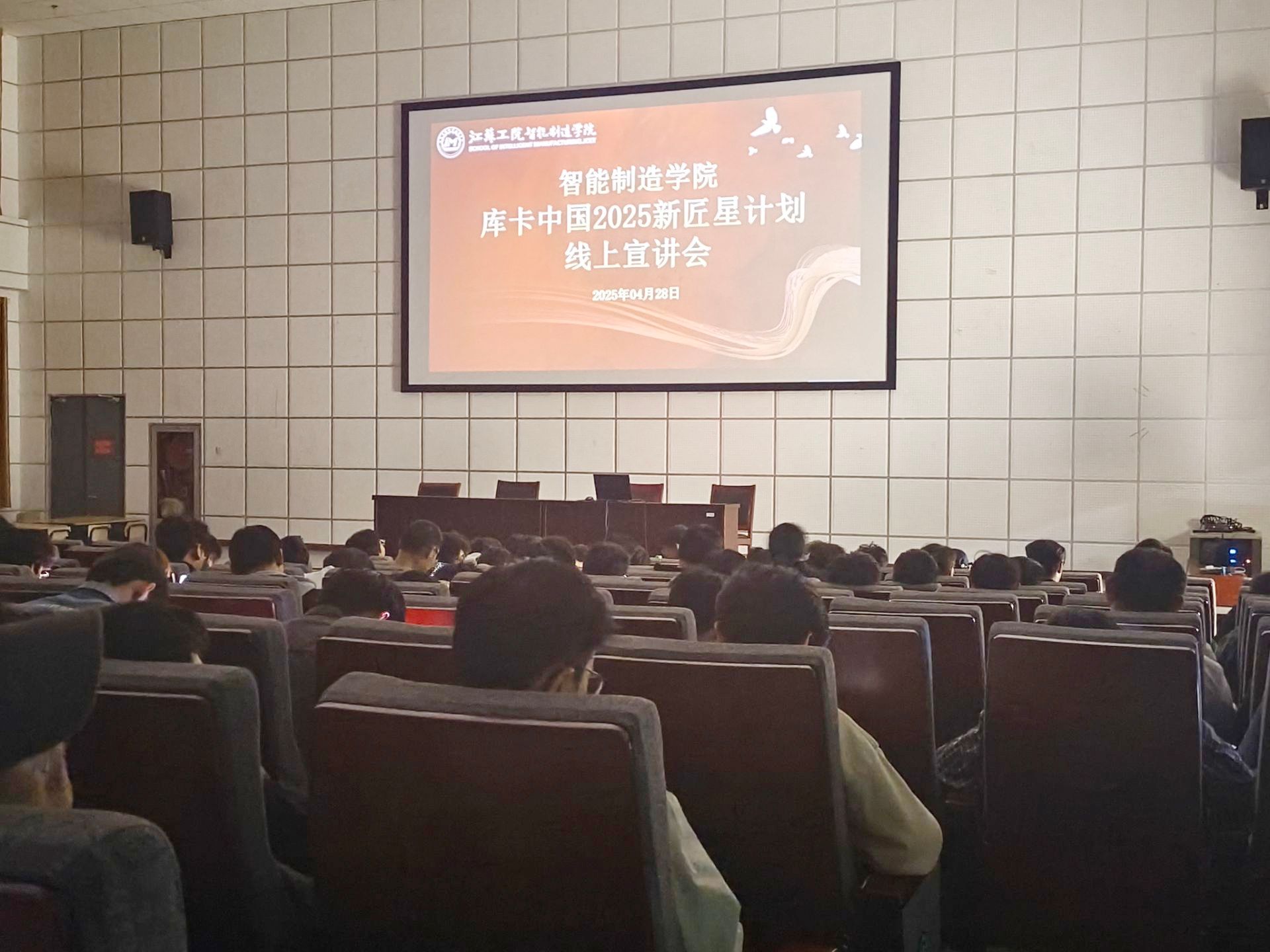 4月28日晚,智能制造学院职业领航辅导员工作室在海门校区一站式学生社区300人报告厅统一组织学生观看了库卡中国 2025新匠星计划线上宣讲会。吸引了众多学生踊跃参与。