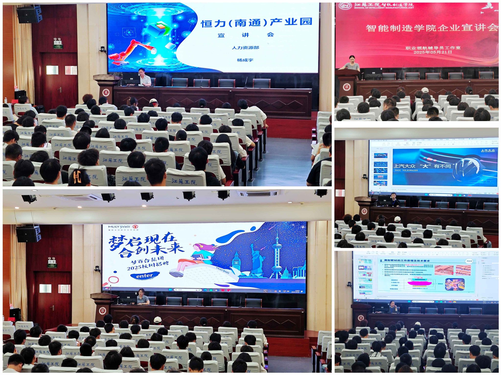 5月20日和5月21日,智能制造学院“职业领航辅导员工作室”在海门校区一站式学生社区200人报告厅,举办了两场实习企业宣讲会。星源材质(南通))新材料科技有限公司、库卡柔性系统(上海)有限公司、梦百合家居科技股份有限公司、江苏恒科新材料有限公上汽大众汽车有限公司、丽水同创科技有限公司等多家企业代表到场,吸引众多学子积极参与。